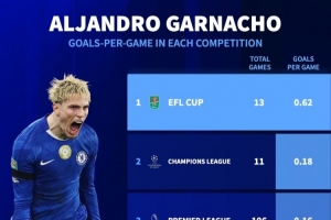 德國轉(zhuǎn)會市場統(tǒng)計了加納喬在各項賽事中的進(jìn)球效率,他在聯(lián)賽杯中場均打進(jìn)0.62球,進(jìn)球效率在他參加的賽事中最高。