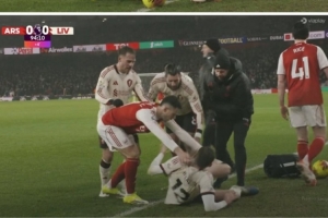 體育資訊1月16日訊 英超第21輪阿森納主場0-0戰(zhàn)平利物浦,比賽中出現(xiàn)爭議一幕,布拉德利受傷倒地,馬丁內(nèi)利試圖將他推出邊線,引發(fā)了雙方?jīng)_突。