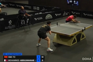 WTT多哈球星挑戰(zhàn)賽:薛飛3-0戰(zhàn)勝阿卜杜勒瓦哈卜,晉級男單32強(qiáng)