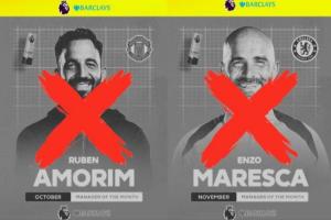 本賽季英超此前頒發(fā)了四座月度最佳主教練的獎杯,其中11月得主馬雷斯卡于元旦當(dāng)天下課,而10月最佳得主阿莫林于1月5日下課。