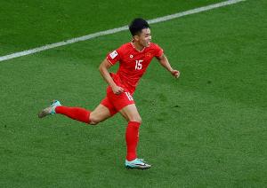 21歲的阮庭北就是越南隊(duì)的真大腿,他憑借一己之力扛著越南隊(duì)躋身四強(qiáng)。兩年前(2023年1月)的亞洲杯上,時(shí)任越南隊(duì)主帥的特魯西埃大膽啟用當(dāng)時(shí)年僅19歲的阮庭北,并讓他首發(fā)出戰(zhàn)越南與日本隊(duì)的比賽。小將不負(fù)眾望獨(dú)造兩球,其中,他在第15分鐘就頭球攻破鈴木彩艷把守的城門!