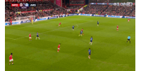 上半場即將進(jìn)入補(bǔ)時(shí)階段時(shí),阿森納門將拉亞出擊到本場邊線附近險(xiǎn)些送給對手一個(gè)空門機(jī)會;他第一下的鏟球踢呲了,但隨后快速起身將球踢出邊線。
