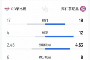 體育資訊1月18日訊 本輪德甲,拜仁5-1逆轉(zhuǎn)客勝雙殺萊比錫。雙方全場重點數(shù)據(jù)對比如下↓(主隊萊比錫在前)