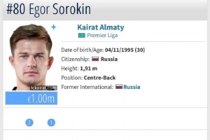 索羅金現(xiàn)年30歲,效力于阿拉木圖凱拉特,本賽季代表球隊出戰(zhàn)了已經(jīng)進行的全部6場歐冠聯(lián)賽階段比賽,打滿540分鐘,德轉(zhuǎn)身價100萬歐。貝克曼現(xiàn)年22歲,2025年代表加爾斯出戰(zhàn)19場瑞典聯(lián)賽,德轉(zhuǎn)身價80萬歐。