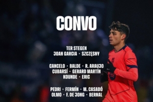 體育資訊1月18日訊 北京時間明天凌晨4點,巴薩將在西甲第20輪比賽中客場對陣皇家社會,巴薩公布了此役的球員名單。傳聞將租借加盟赫羅納的特爾施特根在列,拉菲尼亞右大腿受傷缺席。