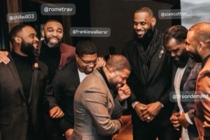 體育資訊7月18日訊 今日,騎士副總經(jīng)理、詹姆斯的兒時(shí)好友布蘭登-威姆斯更新Instagram Story,曬出他與詹姆斯等人的合影。