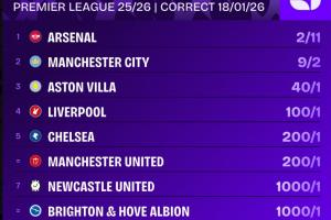 體育資訊01月19日訊 維拉0-1不敵埃弗頓,本輪過后阿森納雖然打平卻擴(kuò)大了領(lǐng)先優(yōu)勢。阿森納目前以7分優(yōu)勢領(lǐng)跑英超,依然是奪冠的最大熱門。