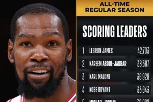 杜蘭特生涯總得分來到31562分,正式超越諾維茨基(31560分),榮升NBA歷史得分榜第六!