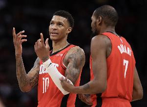 在杜蘭特上半場僅出手4次的情況下,小賈的投射和阿門沖擊活力共同扛起了火箭的進攻大旗。
