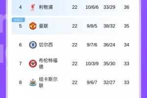 目前利物浦積36分位列第四,曼聯(lián)1分之差緊隨其后位列第五,之后是34分的切爾西、33分的布倫特福德、紐卡以及桑德蘭,還有32分的埃弗頓,布萊頓本輪若贏球,也可能加入這一行列。