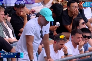 澳網(wǎng)男單首輪,布云朝克特對(duì)陣沙波瓦洛夫,布云朝克特目前0-1落后,巨星周杰倫也在現(xiàn)場(chǎng)觀看這場(chǎng)比賽。澳網(wǎng)開(kāi)賽前,周杰倫參加了澳網(wǎng)組織的一球制勝比賽。