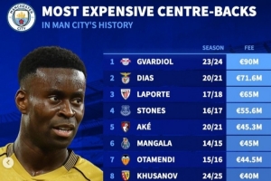 體育資訊1月20日訊 曼城已經(jīng)官宣簽下格伊,《轉會市場》也統(tǒng)計了曼城隊史中衛(wèi)引援榜,格伊僅位列第12位。