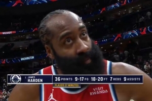 體育資訊1月20日訊 NBA常規(guī)賽,快船在客場以110-106險勝奇才,哈登賽后接受了媒體采訪。