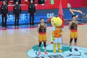 CBA常規(guī)賽第十七輪南通賽區(qū)江蘇肯帝亞vs新疆伊力特,奏唱國(guó)歌環(huán)節(jié),球員閆實(shí)、劉澤希領(lǐng)唱國(guó)歌。一起為肯帝亞男籃加油助威!
