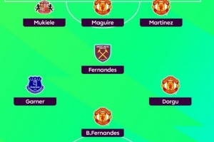 中場:馬特烏斯·費爾南德斯(西漢姆聯(lián))、詹姆斯·加納(埃弗頓)、B費(曼聯(lián))、多爾古(曼聯(lián))