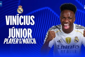 體育資訊1月21日訊 歐冠聯(lián)賽階段第7輪,皇馬6-1摩納哥。賽后,維尼修斯被評為全場最佳球員。