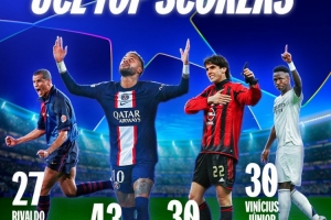 維尼修斯在歐冠中的進球數(shù)達到30球,這讓他追平了卡卡并列巴西球員歐冠進球榜次席,位居兩人身前的是打進43球的內(nèi)馬爾。