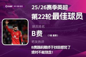 2025-2026賽季英超火熱進行中,體育資訊和咪咕體育聯(lián)合發(fā)起每輪英超最佳球員評選活動!第22輪評選結(jié)果已經(jīng)出爐,曼聯(lián)隊長B費送出助攻幫助球隊擊退曼城,贏下曼市德比,成功當(dāng)選本輪英超最佳。