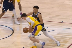 GIF-拉拉維亞上籃球出界 掘金挑戰(zhàn)成功奪回球權(quán)