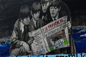 本場(chǎng)比賽馬賽球迷在主場(chǎng)展示出披頭士主題TIFO,披頭士是一支在1960年成立于利物浦的經(jīng)典英國(guó)搖滾樂(lè)隊(duì)。