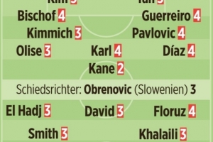 奧利塞3分、基米希3分、卡爾4分、帕夫洛維奇4分、迪亞斯4分