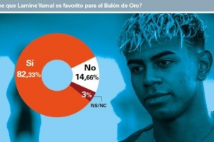 體育資訊7月18日訊 世界體育報(bào)最近發(fā)起了“你認(rèn)為亞馬爾是金球獎(jiǎng)熱門人選嗎?”投票調(diào)查,高達(dá)82.33%的受訪者選擇了“是”。
