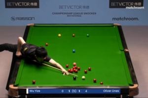 斯諾克冠軍聯(lián)賽第六小組第一比賽日,中國(guó)球員吳宜澤3-1戰(zhàn)勝奧利弗·萊恩斯,第三局比賽,吳宜澤打出生涯首桿147。