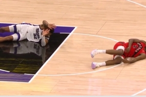 GIF-考德威爾和莫格博卡位對抗倒地,隨后拉扯莫格博腿部也倒地,被吹一級惡意