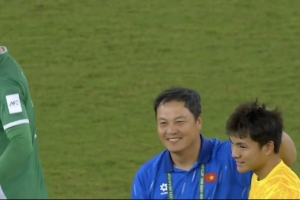 體育資訊1月22日訊 中國U23男足半決賽擊敗越南U23,賽后李昊與對方門將擁抱致意。越南隊(duì)門將教練李云在上前與李昊親切交流,上演“寵溺”摸頭殺。