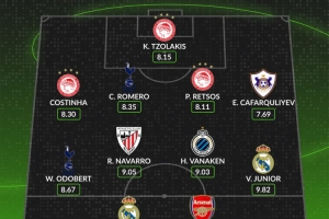 后衛(wèi):科斯蒂尼亞(奧林匹亞科斯)、羅梅羅(熱刺)、雷索斯(奧林匹亞科斯)、賈法爾古利耶夫(卡拉巴赫)