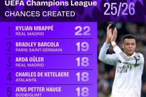本賽季歐冠創(chuàng)造機(jī)會(huì)榜