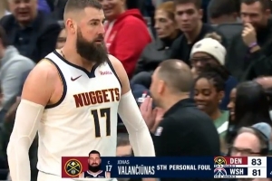 GIF-瓦蘭丘納斯跳球摟人被吹犯規(guī),個人第5犯被換下
