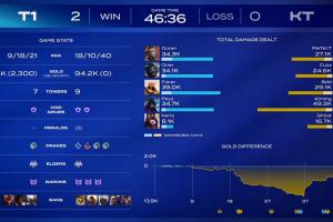 體育資訊01月23日訊 T1 2:0 KT,賽后數(shù)據(jù)面板顯示T1在落后13.9k經(jīng)濟(jì)差的情況下最終翻盤比賽。
