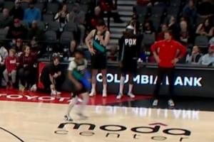 體育資訊1月23日訊 今日開拓者127-110戰(zhàn)勝熱火,比賽進行到第4節(jié)最后一分鐘,勝負已定,楊翰森在場邊準備出場,但是依舊沒能等到這短暫的機會。