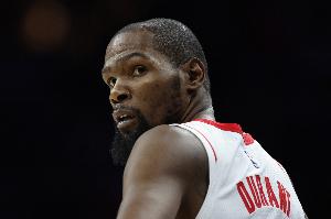 上場比賽,杜蘭特加時出戰(zhàn)44分鐘,21投13中,三分8中5,罰球6中5,砍下36分7籃板3助攻1蓋帽。