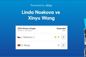 體育資訊01月24日訊 澳網(wǎng)女單第3輪,王欣瑜對(duì)陣諾斯科娃。兩人第一盤戰(zhàn)至2-2時(shí),因?yàn)楦邷靥鞖獗荣悤和!?/p>