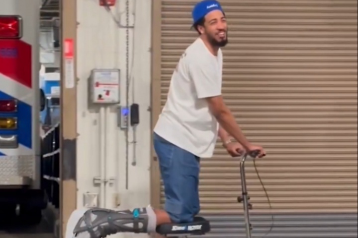 體育資訊07月19日訊 今日WNBA全明星賽在印第安納舉行。步行者當(dāng)家球星泰瑞斯-哈利伯頓穿著保護(hù)靴,乘著車來(lái)到了現(xiàn)場(chǎng)。