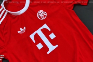 這款球衣由阿迪達(dá)斯設(shè)計(jì),主色調(diào)為紅色,贊助商標(biāo)志、阿迪達(dá)斯三葉草、拜仁傳統(tǒng)隊(duì)徽為白色。