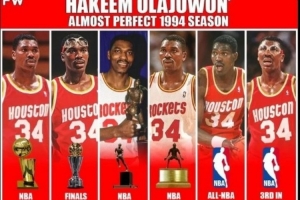 1994年6月23日,總決賽G7,火箭坐鎮(zhèn)主場迎戰(zhàn)尼克斯,火箭球星奧拉朱旺大發(fā)神威,他獨得25分10籃板7助攻1搶斷3蓋帽的豪華數據,幫助球隊奪得隊史第一個總冠軍。
