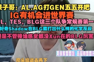 果子哥:AL打GEN五五開吧,IG有機(jī)會(huì)進(jìn)世界賽,AL,TES,BLG這三個(gè)隊(duì)爭(zhēng)常規(guī)賽第一,還挺好奇Shadow在BLG能打出什么樣的化學(xué)