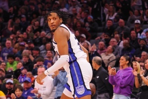 此役,國(guó)王大前鋒艾薩克-瓊斯發(fā)揮出色。他17投10中,三分1中1,罰球4中3,得24分11板2助1蓋帽。