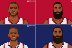 哈登場(chǎng)均31.8分5.7籃板7.5助攻,保羅16.6分7.7助攻1.8搶斷。