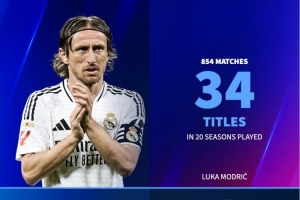 莫德里奇:39歲,身價400萬。20個賽季,854場,34冠