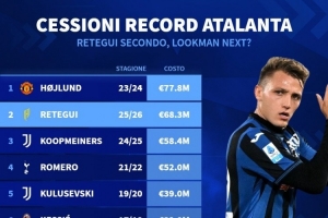 體育資訊7月22日訊 德國(guó)轉(zhuǎn)會(huì)市場(chǎng)統(tǒng)計(jì)了亞特蘭大出售球員的轉(zhuǎn)會(huì)費(fèi),并列出榜單,霍伊倫居首,雷特吉、庫(kù)普梅納斯前三,而盧克曼可能在今夏離隊(duì)上榜,預(yù)計(jì)轉(zhuǎn)會(huì)費(fèi)4000萬(wàn)到5000萬(wàn)歐元。