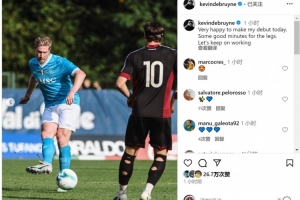 德布勞內(nèi)社媒曬出比賽照片,并配文:“很高興在今天上演首秀,這些比賽時(shí)間有助于恢復(fù)狀態(tài),讓我們繼續(xù)努力?!?/p>