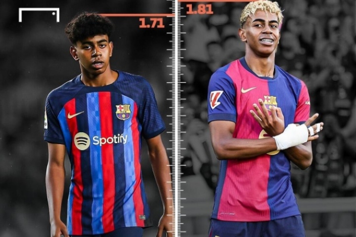 體育資訊07月24日訊 西班牙進(jìn)球網(wǎng)報(bào)道了亞馬爾的身材變化,他在兩年內(nèi)長(zhǎng)高了10cm。