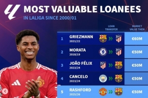 體育資訊7月24日訊 巴薩已經(jīng)官宣租借曼聯(lián)前鋒拉什福德,《轉(zhuǎn)會市場》統(tǒng)計顯示后者也是新世紀(jì)西甲租借的身價并列第二貴球員。