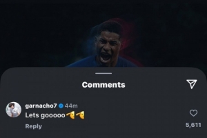 加納喬在拉什福德官宣社媒下留言道:“讓我們走!????”并配上了“敬禮”表情。