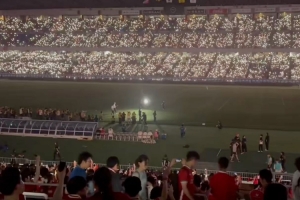 當(dāng)體育場被紅白燈光照亮?xí)r,利物浦傳奇伊恩-拉什走上球場,獻(xiàn)上鮮花,以紀(jì)念迪奧戈-若塔和安德烈-席爾瓦。