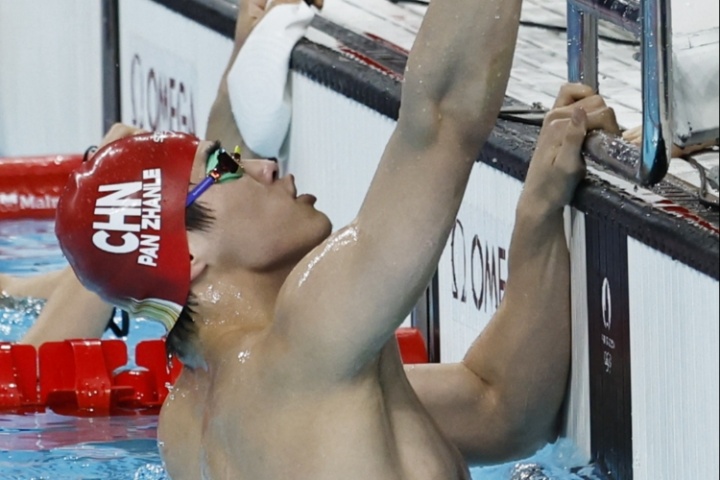 在前天的200米自由泳預賽中,潘展樂游出了1分47秒46,這一成績排名小組第7、總成績第22無緣晉級半決賽。